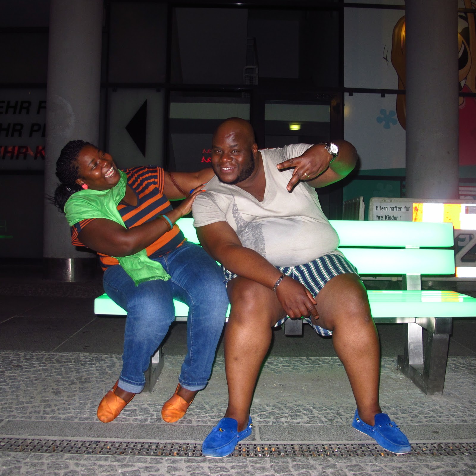 Myself and Hubby...Playing around... these Lighted Benches are extremely cool and Modern...we had to seat there and Pose for Pictures off course! |